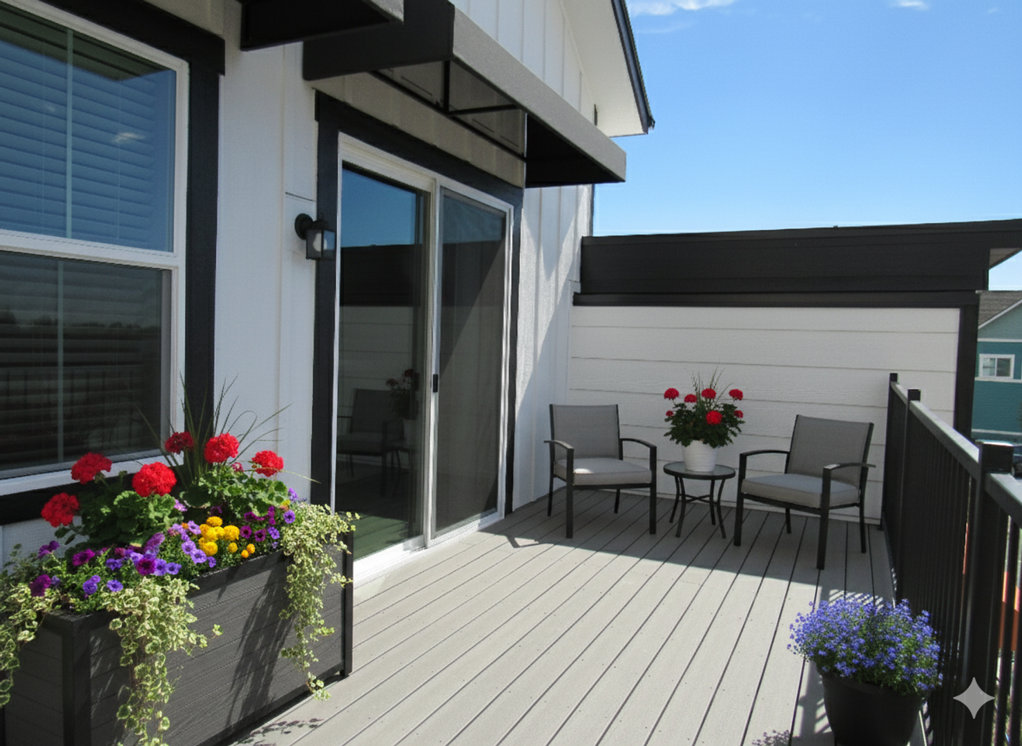Step out onto your expansive 154-square-foot private front deck—a perfect space to unwind, entertain, or simply enjoy the fresh air. Inside, enjoy wood-style flooring, granite countertops, solid wood cabinetry, and sunlit interiors that feel warm and welcoming.