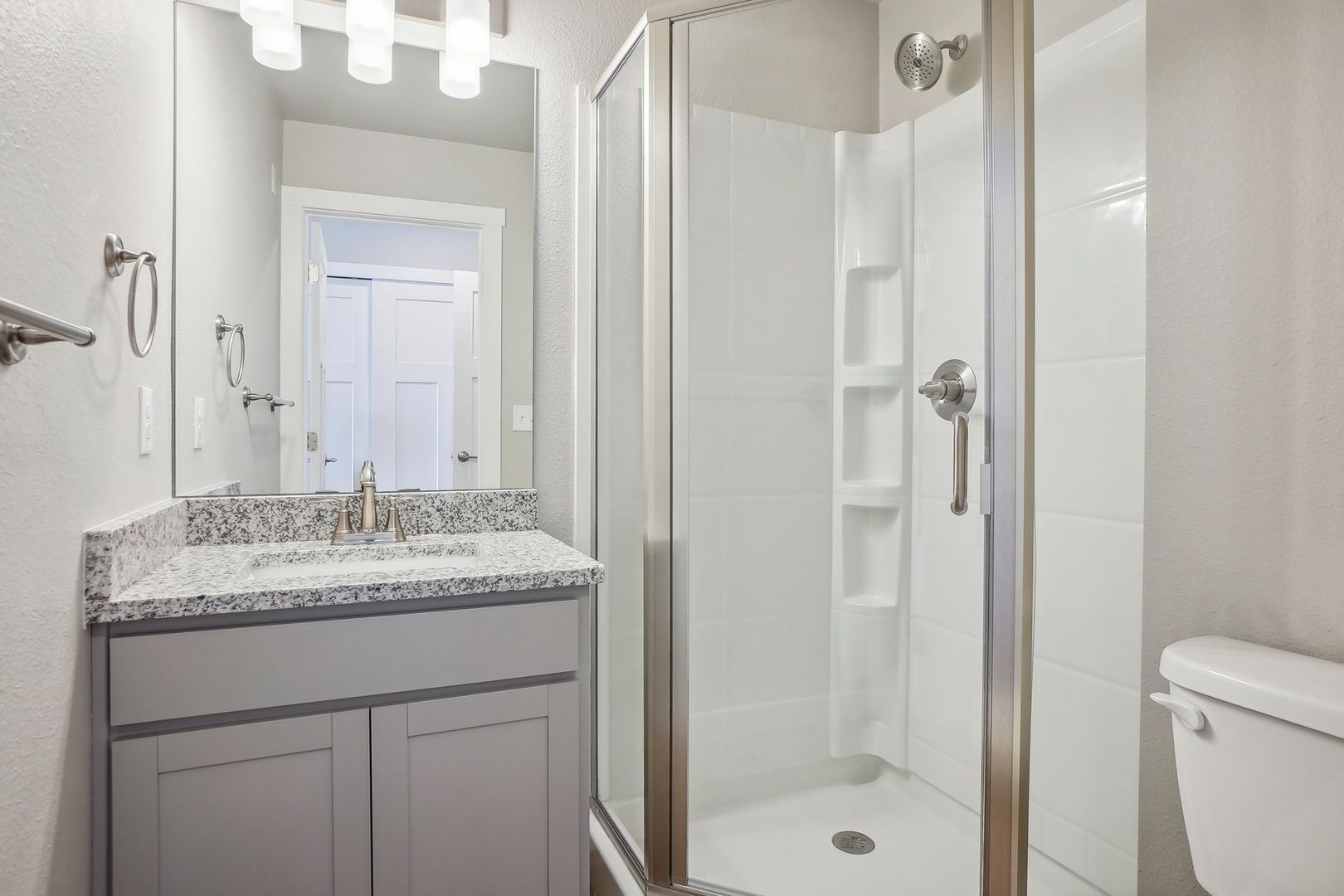 Your home features beautiful touches like granite countertops and solid wood cabinets, while smart features help you save on utilities. Sun-filled rooms, built-in shelves, and cozy hardwood-style floors create a warm welcome whenever you come home. The split-bedroom design ensures privacy, while the versatile floor plan areas can easily accommodate a professional home office, welcoming guest space, or a space for you and your roommates to share time while allowing just as much space for me-time.