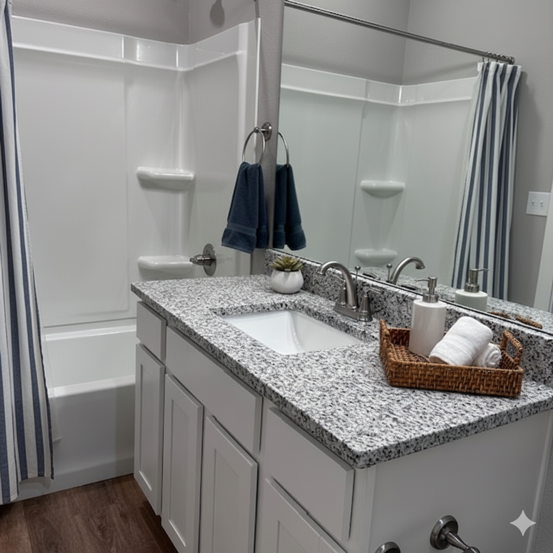 Extra insulation, Energy Star appliances, double pane windows, and energy-efficient heat pump and cooling system translate to lower utility costs for you.