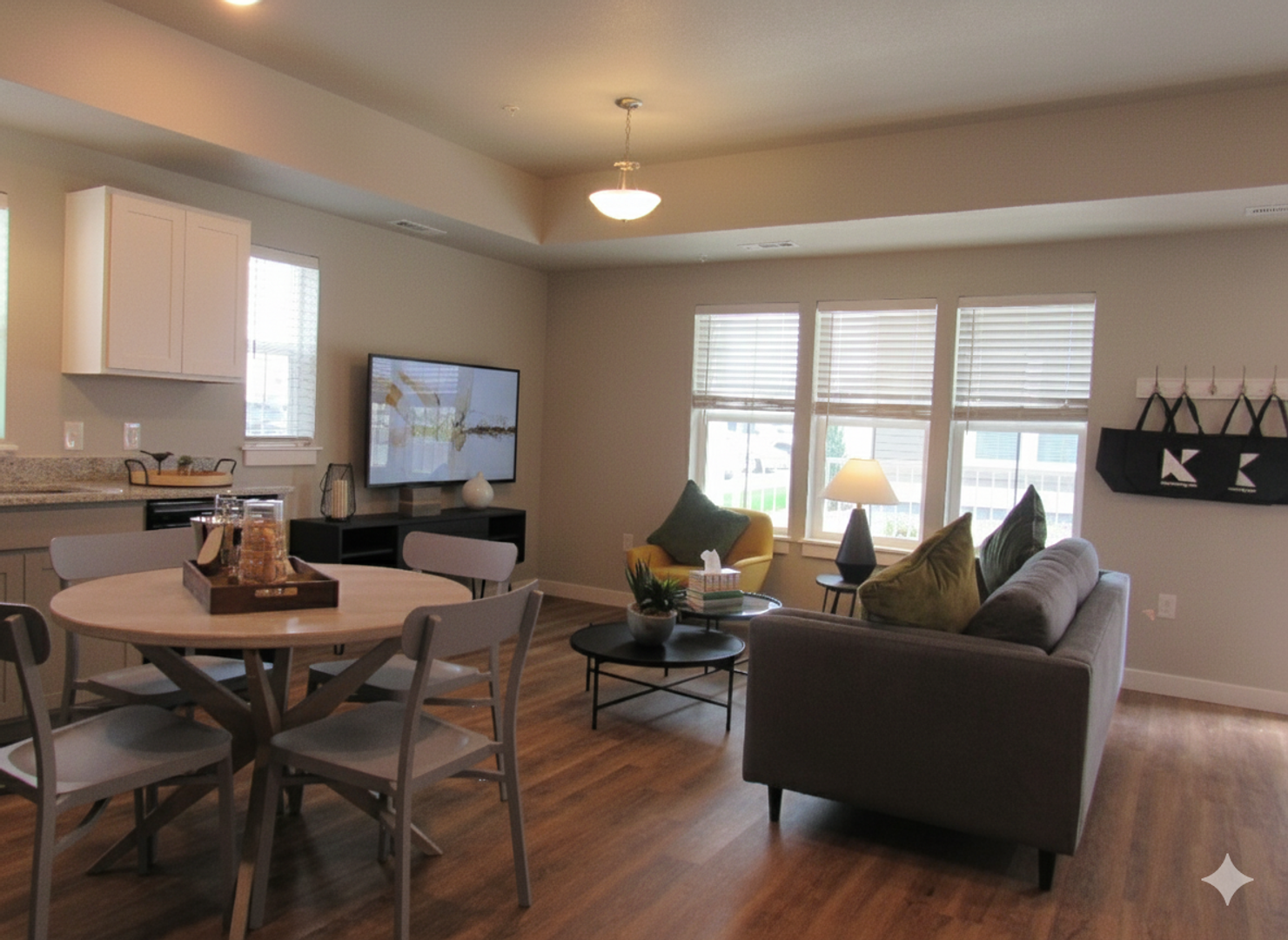 Extra insulation, Energy Star appliances, double pane windows, and an energy-efficient heat pump and cooling system translate to lower utility costs for you.