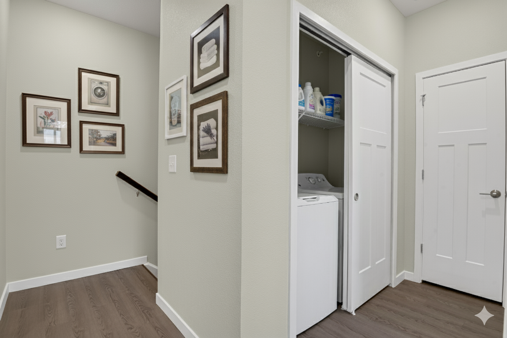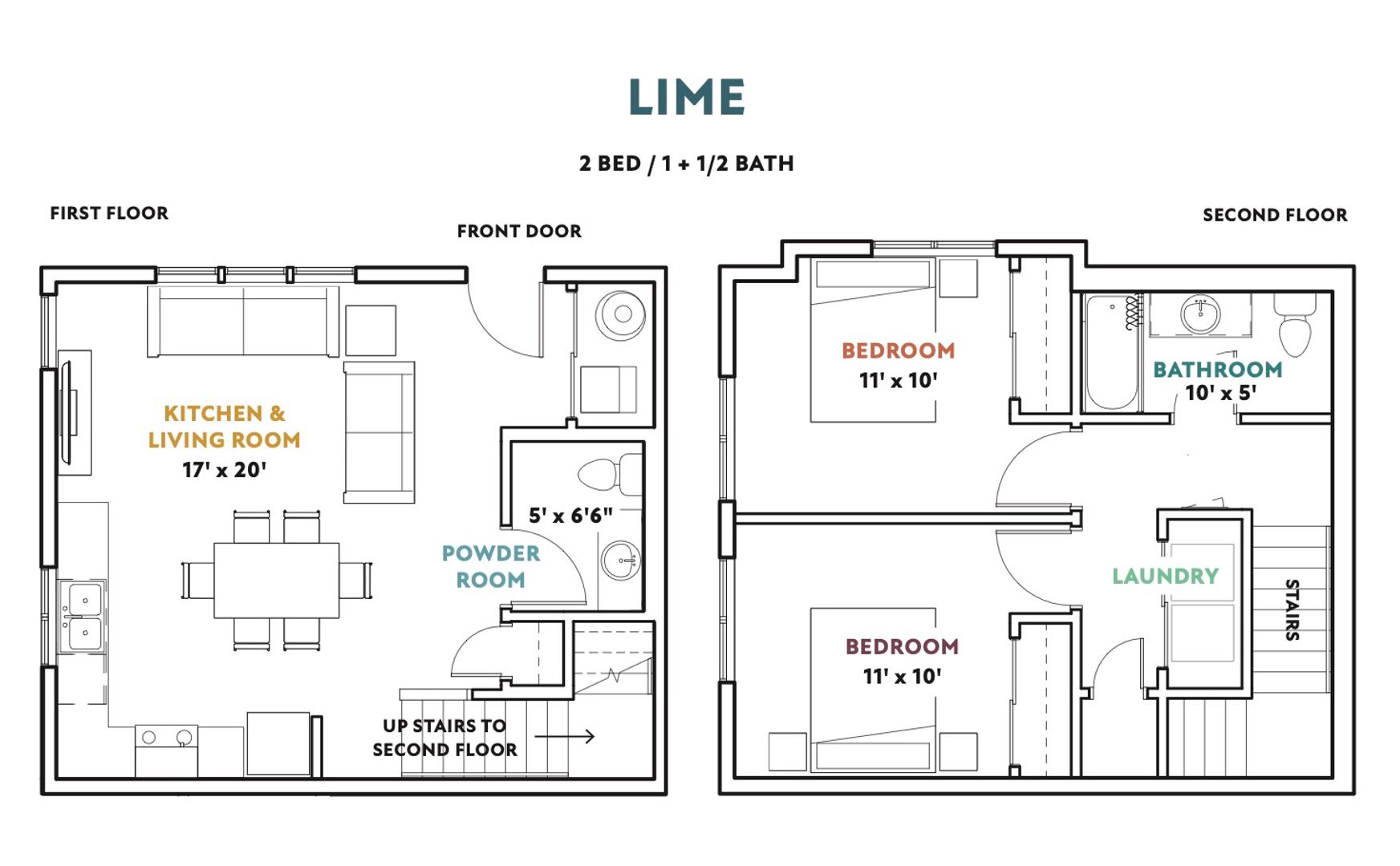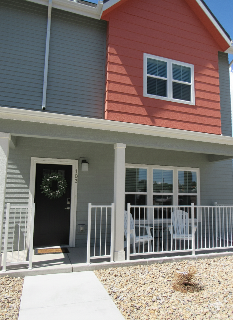 Step onto your private covered front porch inside the Lime floor plan, a 2 bedroom, 1.5 bathroom multi-level modern concept living space with beautiful hardwood-style flooring throughout. The stylish kitchen has a stainless steel farmhouse sink, granite countertops, solid wood cabinets and an abundance of natural light flooding the space. The built-in shelves and large closets offer ample room for your belongings, keeping your home organized and clutter free. Head upstairs to find 2 bedrooms, a full bathroom and a washer and dryer to make laundry room day a breeze! Sit outside on your private front porch for some fresh air or mountain views depending on unit location.